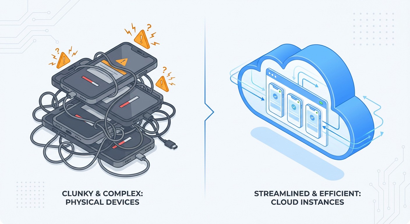 - Failed automation: Physical phones can't run scripting tools or remote access apps (Temu blocks TeamViewer).