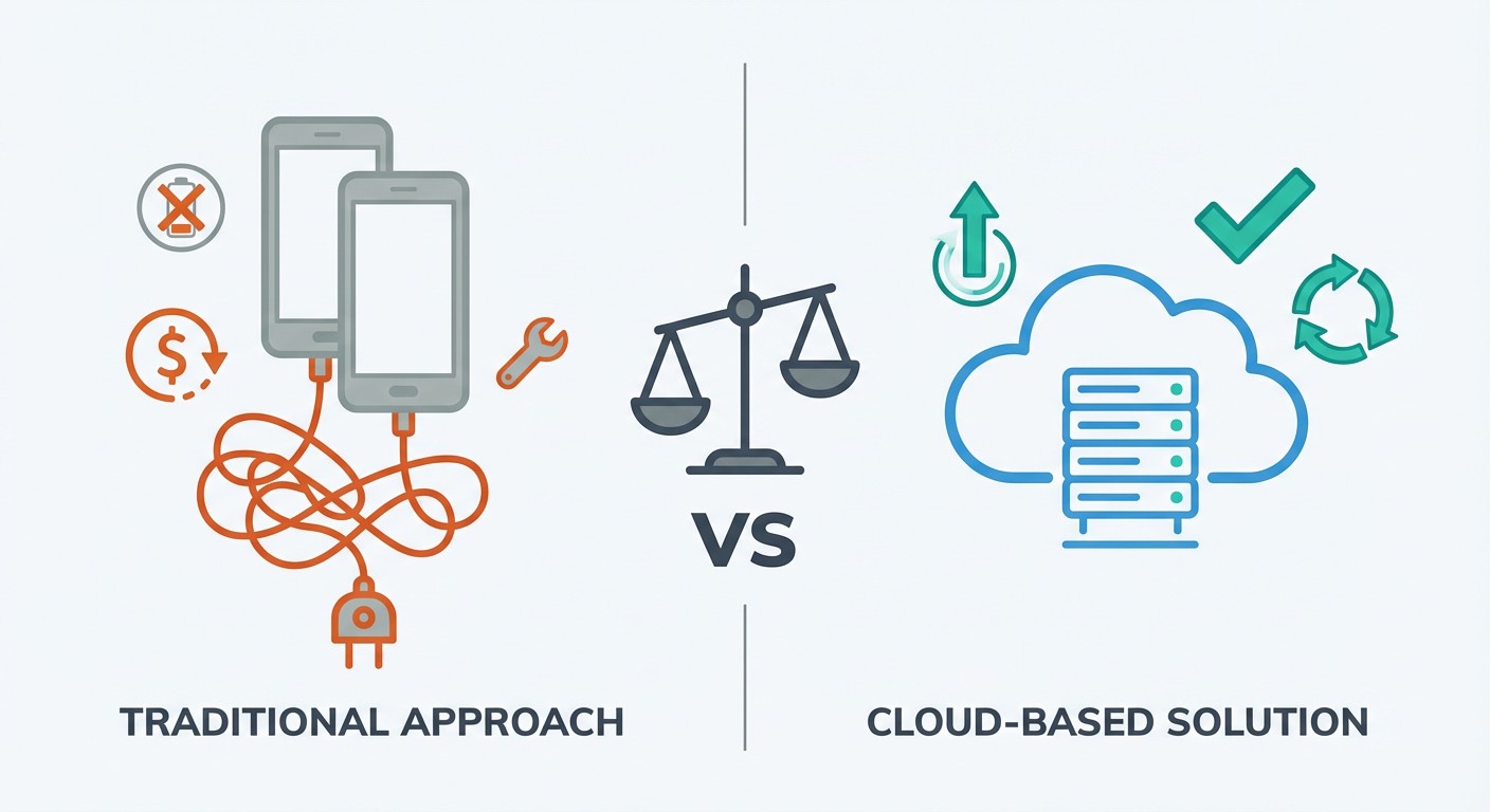 Beyond money, FoxPhone saves approximately 4-6 hours per week in device management—no charging cables, no updates on multiple devices, no "which phone has which town?" confusion.