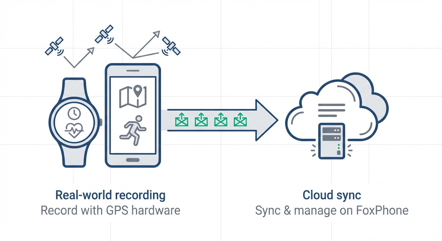 FoxPhone is not a substitute for actually recording activities with real GPS hardware. You can't use FoxPhone to fake workouts or generate GPS tracks—it's purely for syncing, monitoring, and managing accounts. You still need your physical phone, smartwatch, or bike computer to actually track the run or ride with authentic location data.