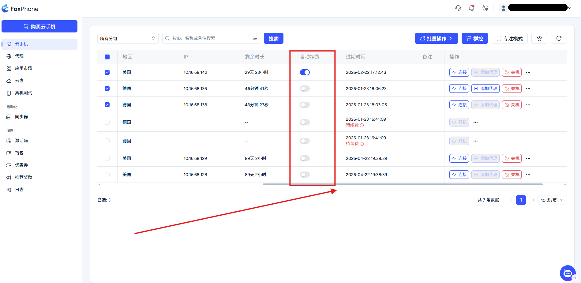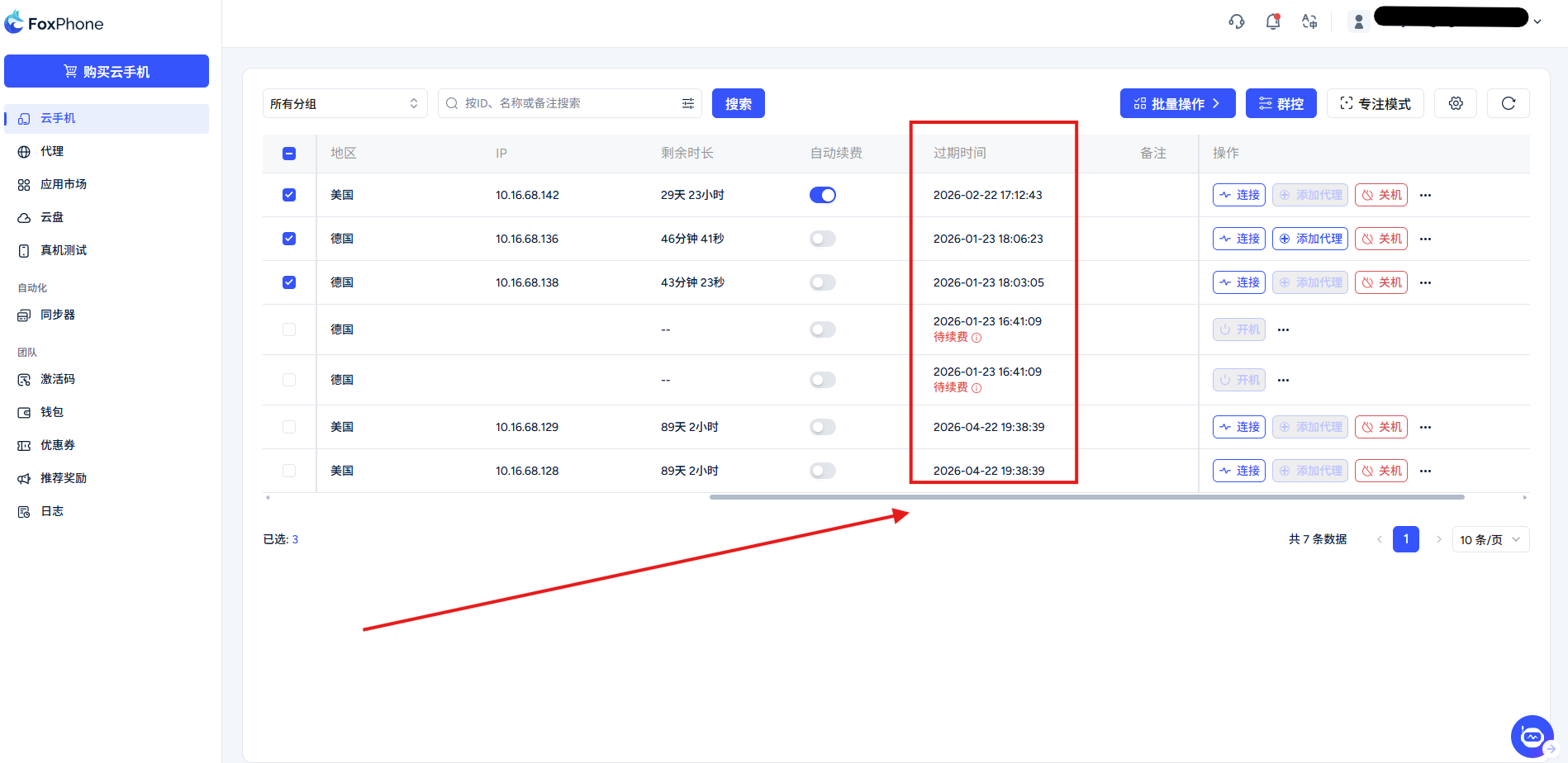 Note: The duration fee is generated after the cloud phone purchase is completed and cannot be suspended.